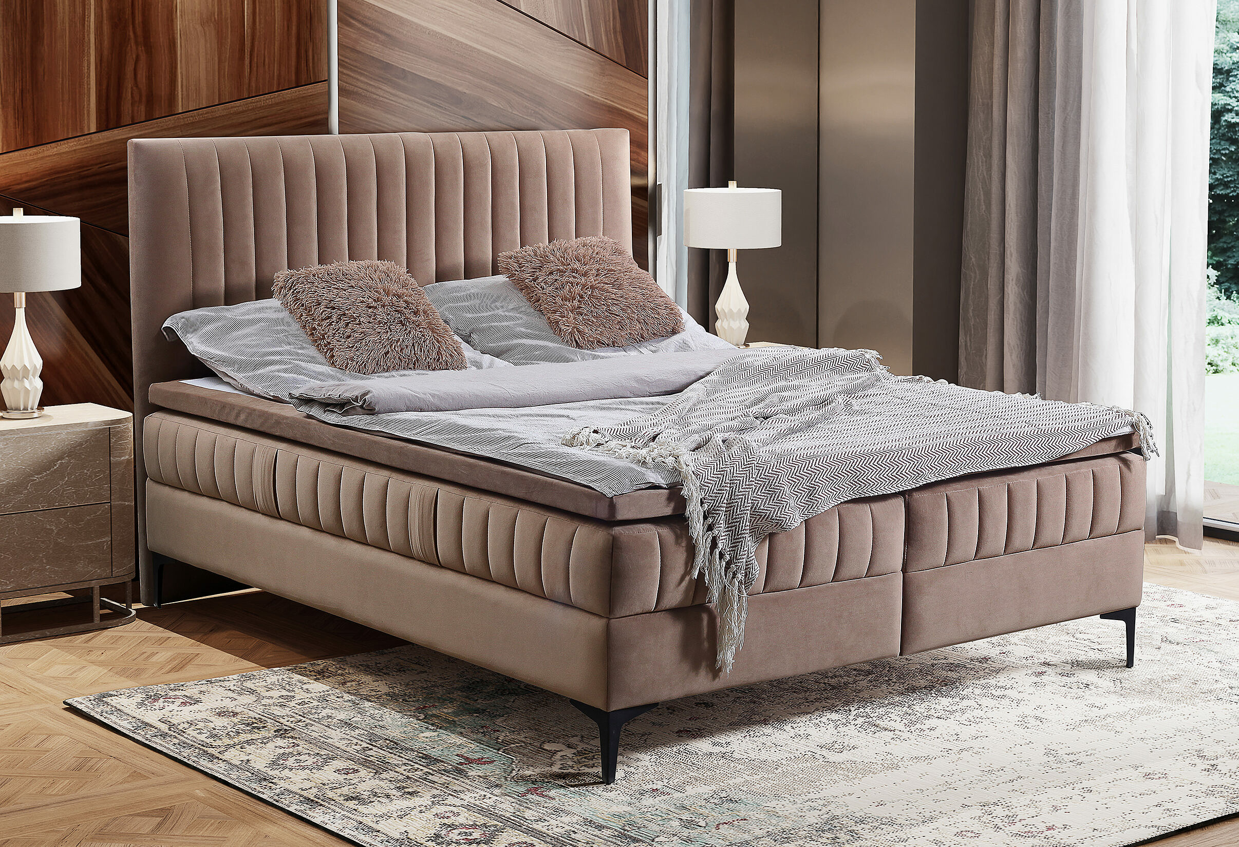 - Tapicerowane wezgłowie w formie pionowych paneli