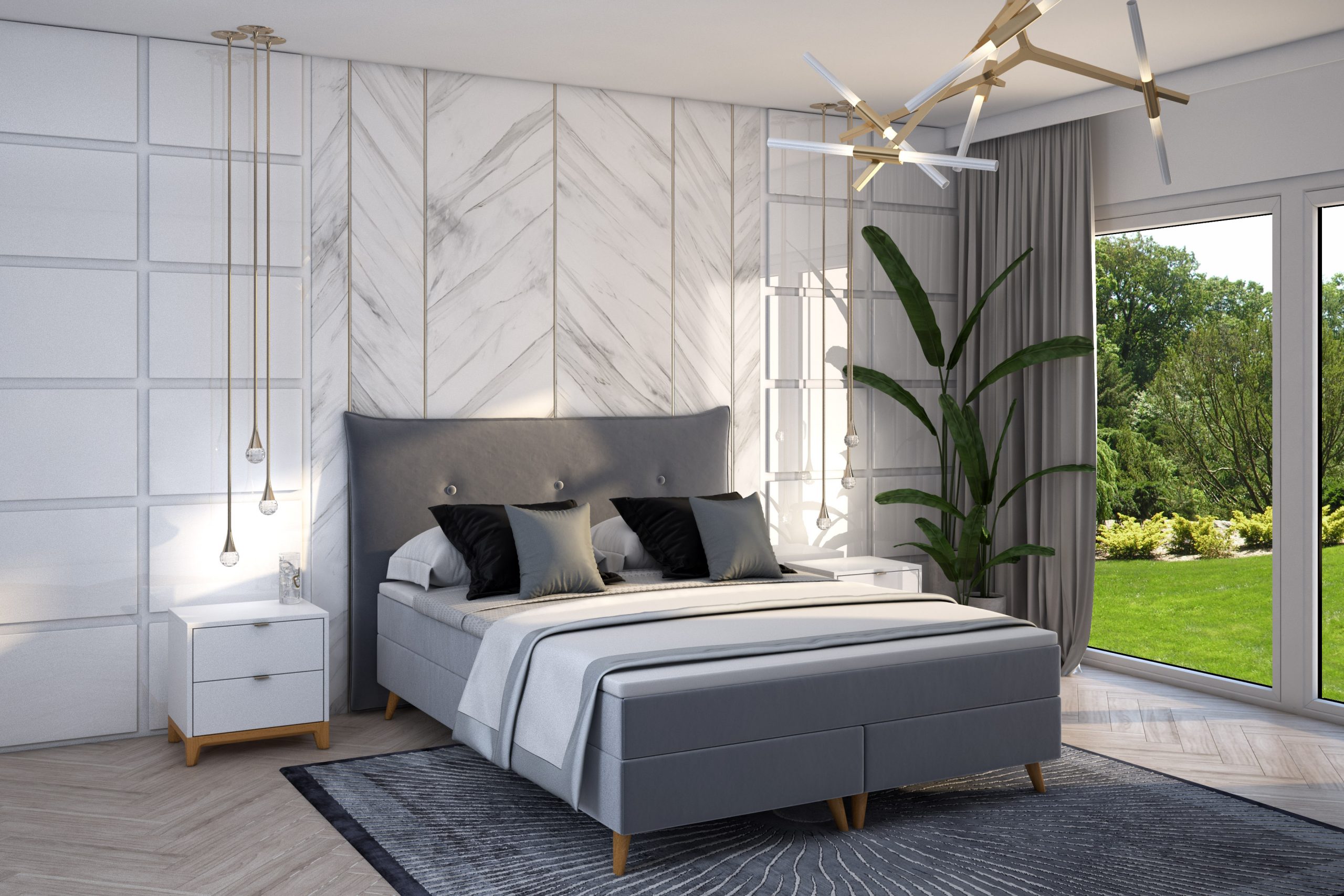 Lekka forma i poduszkowy styl zagłówka tworzą doskonałą kompozycje Która doskonale dopełni wyglądu nowoczesnej przytulnej sypialni.