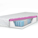 - wkład: sprężyna kieszeniowa 7 strefowa, pianka poliuretanowa o gęstości 25kg/m3, pianka Visco 4cm 50kg/m3,